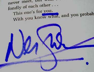 Turned out it was fantastic, warm-hearted evening with a reading of Chivalry, a short about the discovery of the Holy Grail, Q&A, interview and then much signing. I’d ended up on a table with a lovely couple getting a Gaiman book signed for each of their children. I always feel awkward getting things signed but bolstered by the gentle, lovely atmosphere I braved the queue and sputtered something about this being my first ‘grown-up’ Gaiman novel (no matter how you prepare I always find that the beaming, slightly wild-eyed 10 year old in you pops out on occasions like this). But, Mr Gaiman was smiling and gracious and whilst I babbled on about Mills & Boon (don’t ask) he suggested that since this was a ‘first’, special book, therefore he would sign it to me on the dedication page. And he did. And I was delighted. And then I had to go sit down and drink some organic cola (don’t do it kids, it’s pretty nasty) to recover. Henderson’s provided some fab nibbles, and then it was chucking-out time.